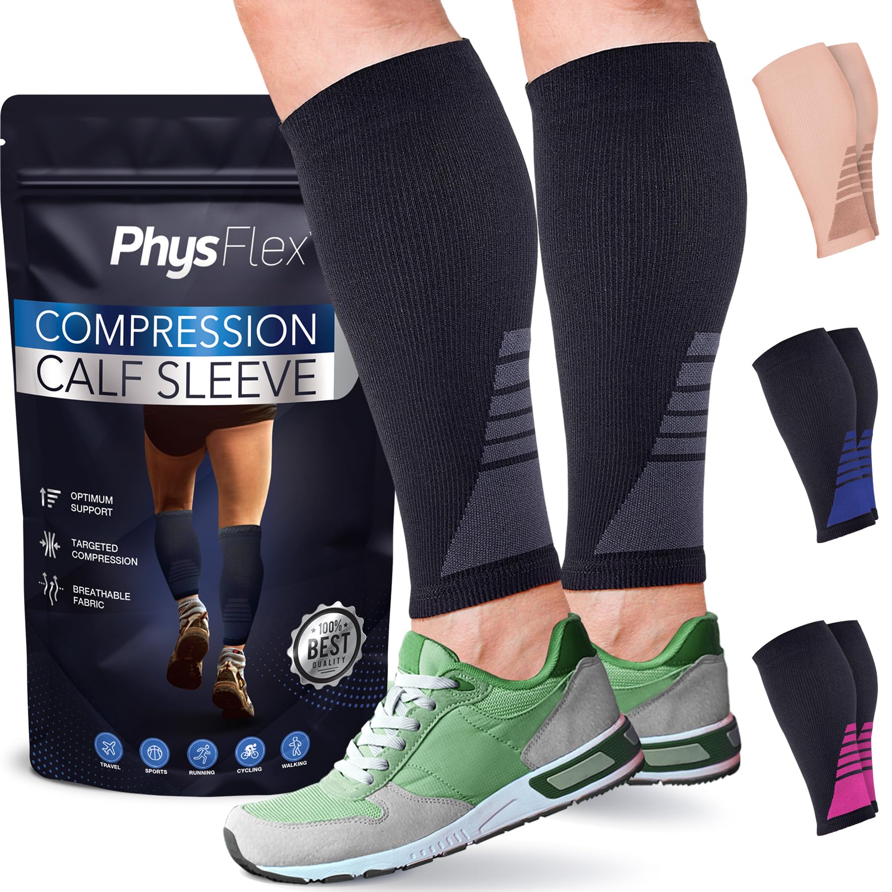 Compared to other calf compression sleeves, the PhysFlex model stands out for its versatile use across different activities and conditions, as well as its breathable comfort. While some competitors offer more size or color options, PhysFlex provides reliable compression and support at a competitive price. This product is best for individuals seeking multi-purpose leg support, including athletes, pregnant women, and those with varicose veins or prolonged standing jobs. Overall, we confidently recommend PhysFlex Calf Compression Sleeves for anyone looking to improve leg comfort and circulation with a practical, easy-to-wear solution.