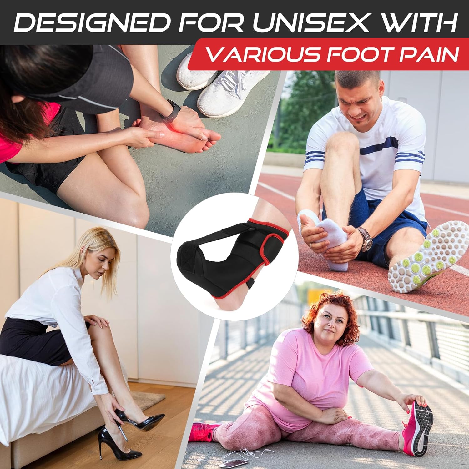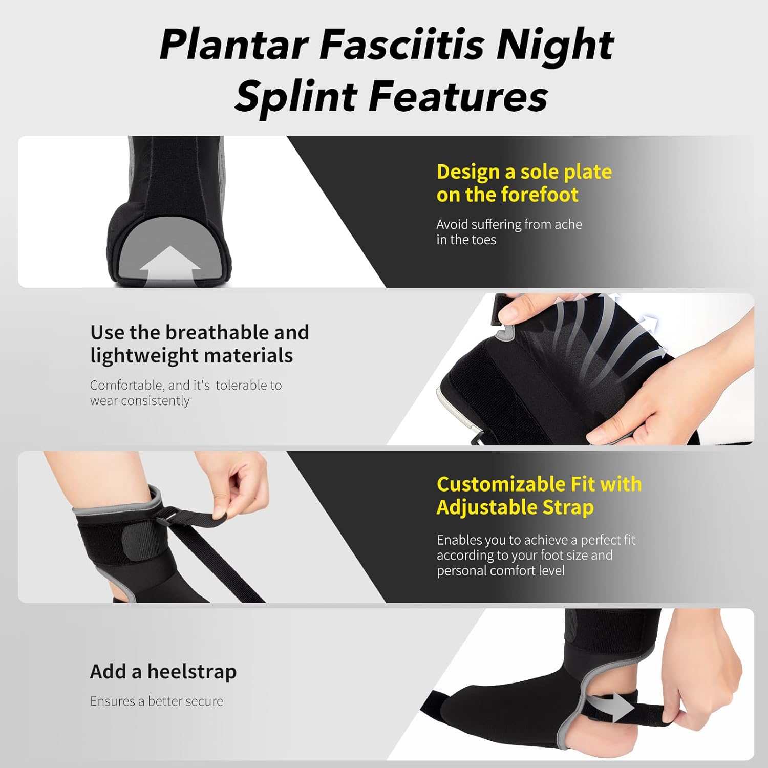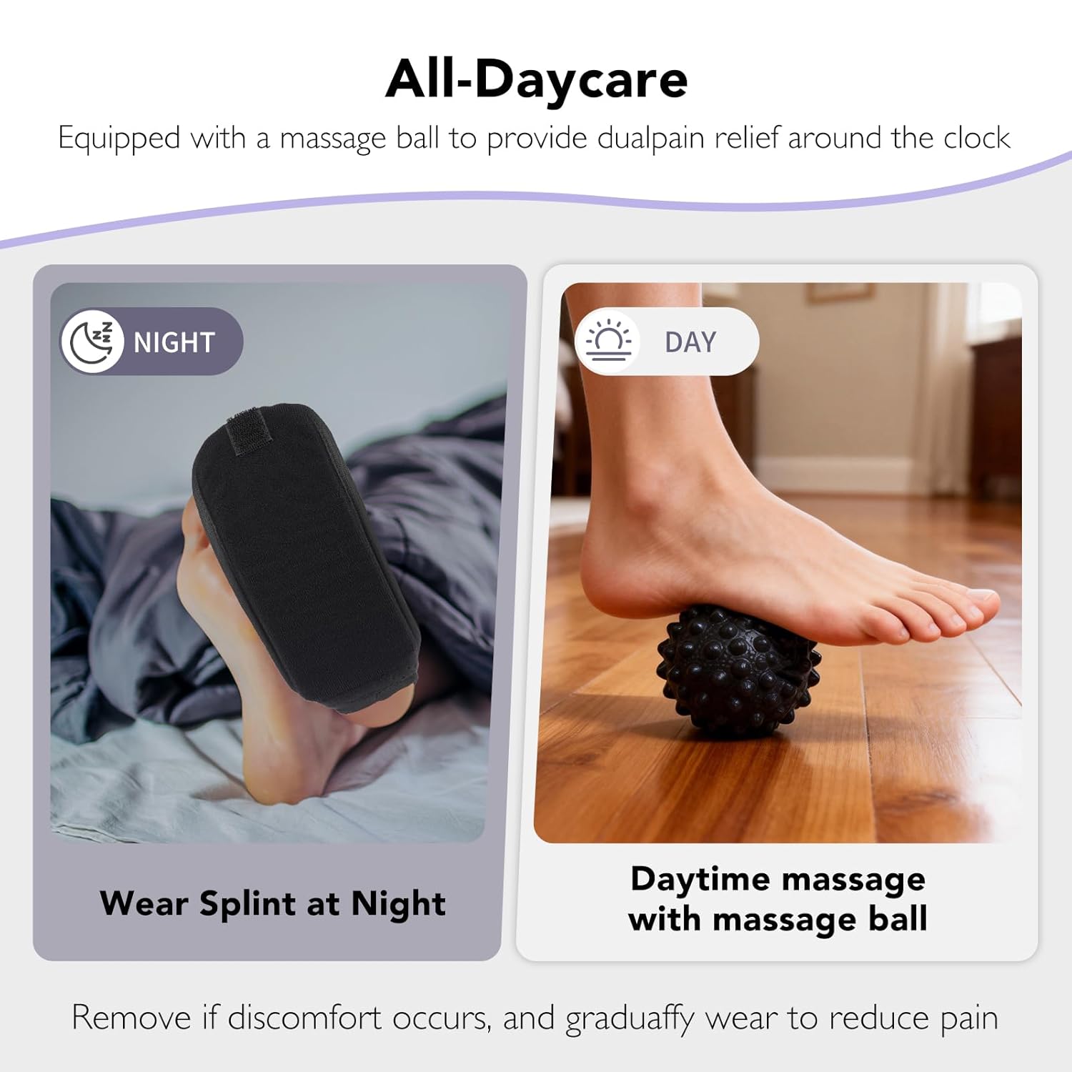 Foot pain from plantar fasciitis, Achilles tendonitis, or heel spurs can make daily activities painful and limit mobility. Many people suffer from discomfort when walking or standing for long periods and find it hard to get restful sleep due to foot pain. The Upgraded Plantar Fasciitis Night Splint with Massage Ball offers a practical solution by providing gentle, consistent stretching and massage throughout the night, helping to reduce pain and support healing.