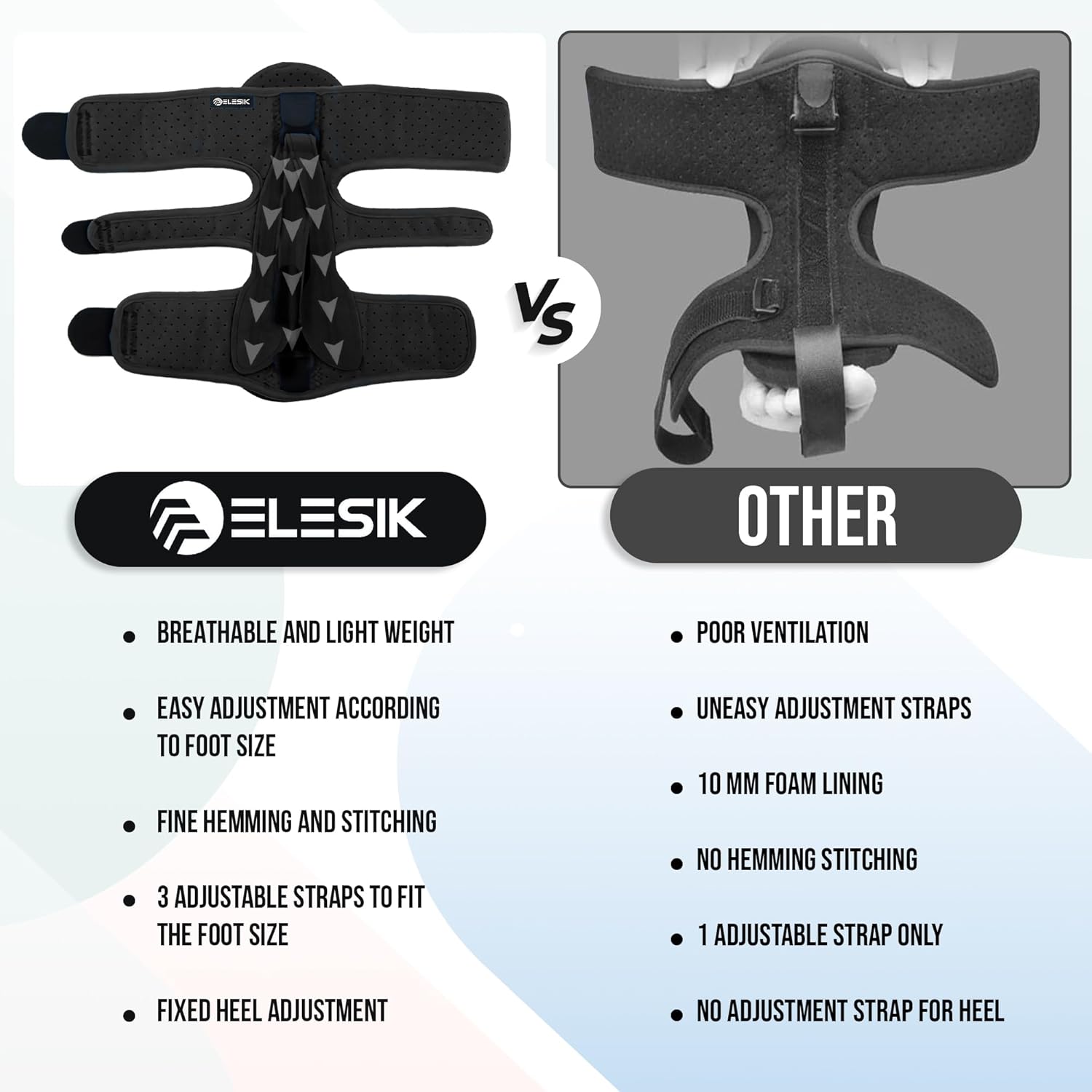 Compared to similar night splints and braces, the ELESIK Plantar Fasciitis Night Splint stands out for its combination of comfort, durability, and versatility addressing multiple foot conditions. While some splints focus solely on plantar fasciitis, this product also targets foot drop and Achilles tendonitis, making it a multifunctional option. It is best suited for individuals seeking overnight support to relieve chronic foot pain and improve mobility, especially those who prefer an adjustable and breathable design. Overall, the ELESIK night splint is a reliable and effective choice for anyone looking to reduce foot pain and enhance healing during rest.