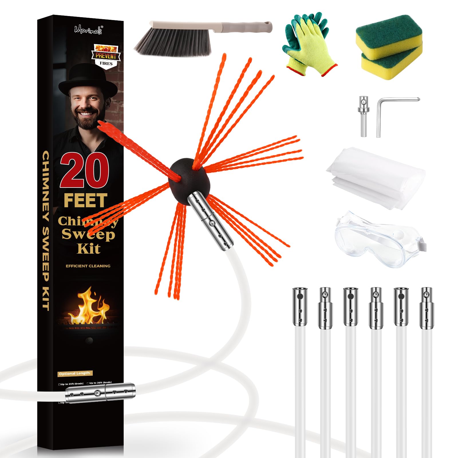 2. Morinoli 10 Feet Chimney Sweep Kit
